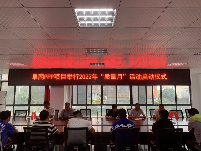在阜南PPP项目举行的2022年“质量月”活动启动仪式上,项目部以“推动质量变革创新,促进质量强国建设”为主题,深入贯彻落实集团和公司“质量月”活动要求,以公司高质量发展为导向,明确活动指导思想和活动主题,并就高效开展本次活动提出了相应的三点要求。