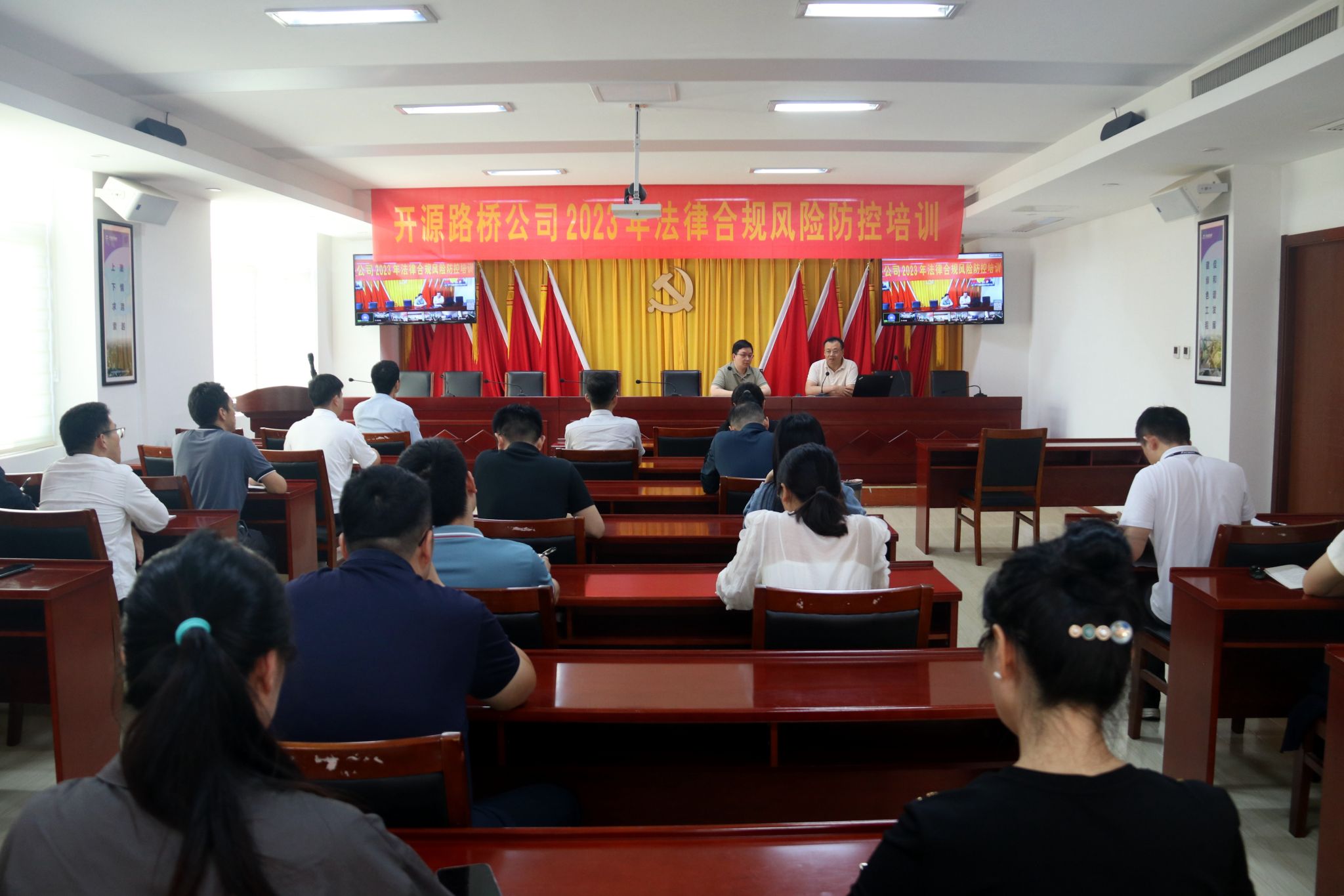 9月27日,公司举办2023年法律合规风险防控培训会议。本次法律培训采用线上线下相结合的方式进行,在公司机关设置主会场,各基层单位设置视频分会场,公司党委委员、副总经理刘宏超出席。