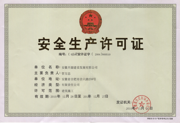 安徽开源建设发展有限公司安全生产许可证